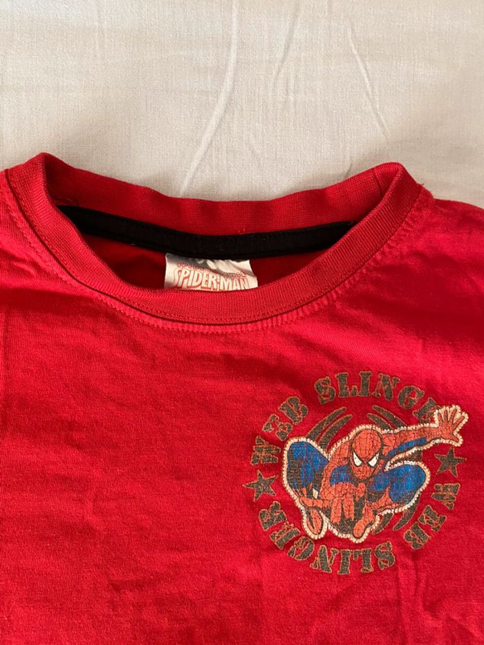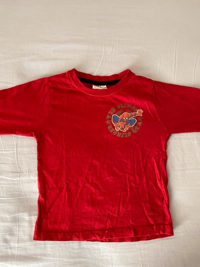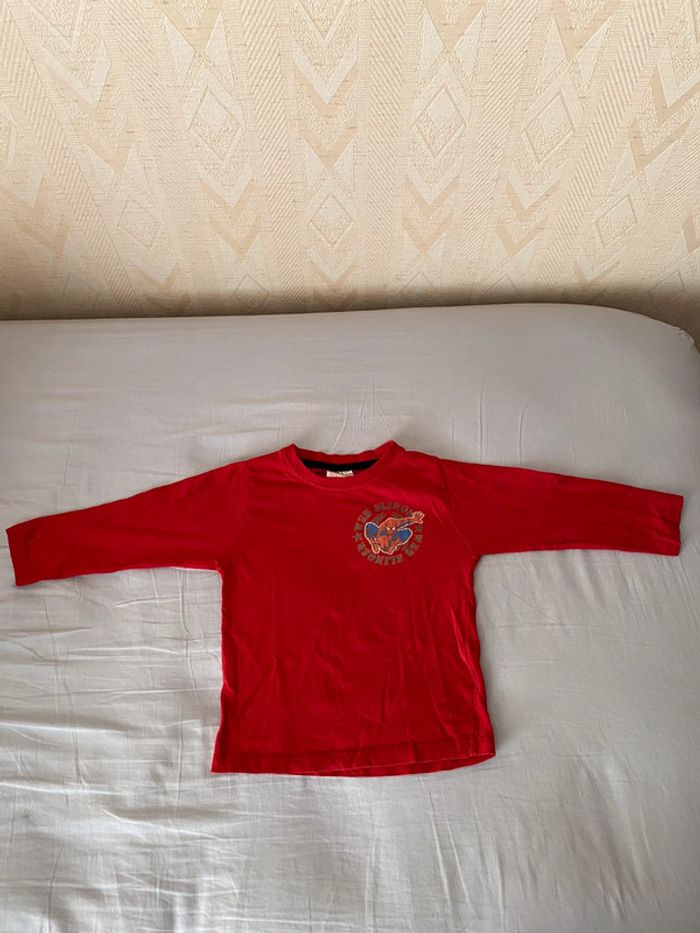 Bonjour je vends un superbe beau t-shirt ML à motifs Spiderman de couleur rouge Étiquette coupé mais taille 5 ans. Manches longues L’état vu en photo Tache à la manche vu en photo Couleur passé Le t-shirt s’accorde facilement avec tout jeans/ pantalon /jogging short baskets chaussures etc … N’hésitez pas à consulter mes autres annonces en ligne