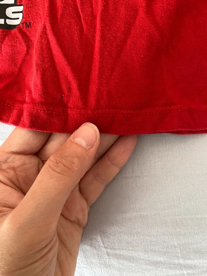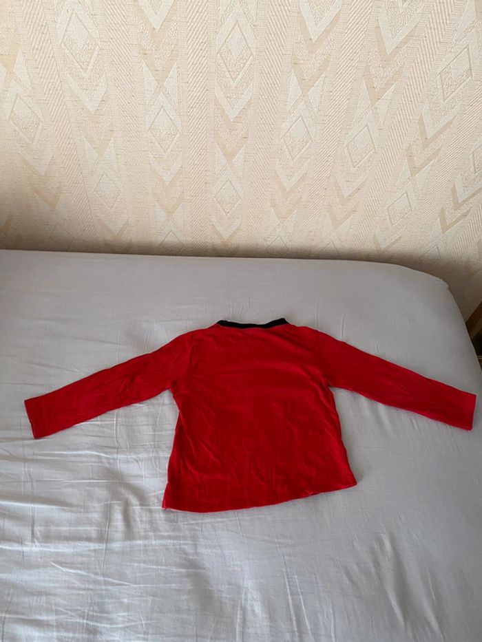 Bonjour je vends un superbe beau t-shirt à motifs Star Wars de couleur rouge Étiquette coupé mais taille 5 ans Manches longues L’état vu en photo Petit trou visible en photo + bouloches Le t-shirt s’accorde facilement avec tout jeans/ pantalon /jogging short baskets chaussures etc … N’hésitez pas à consulter mes autres annonces en ligne