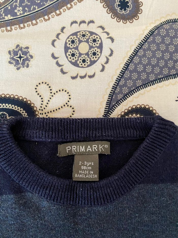 Superbe beau pull en maille col rond Primark bleu taille 2-3 ans - photo numéro 1