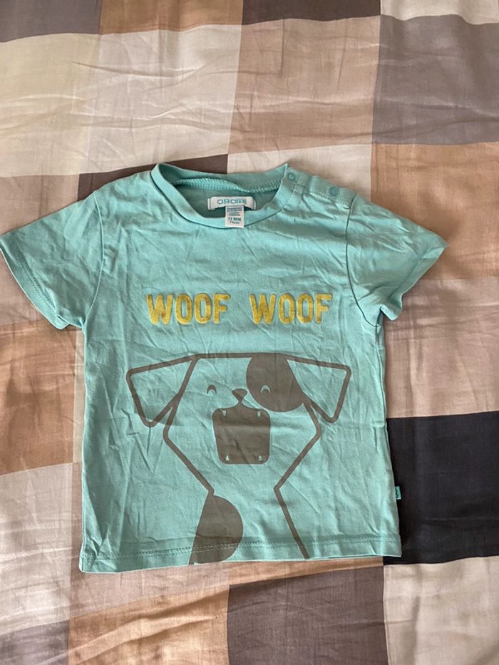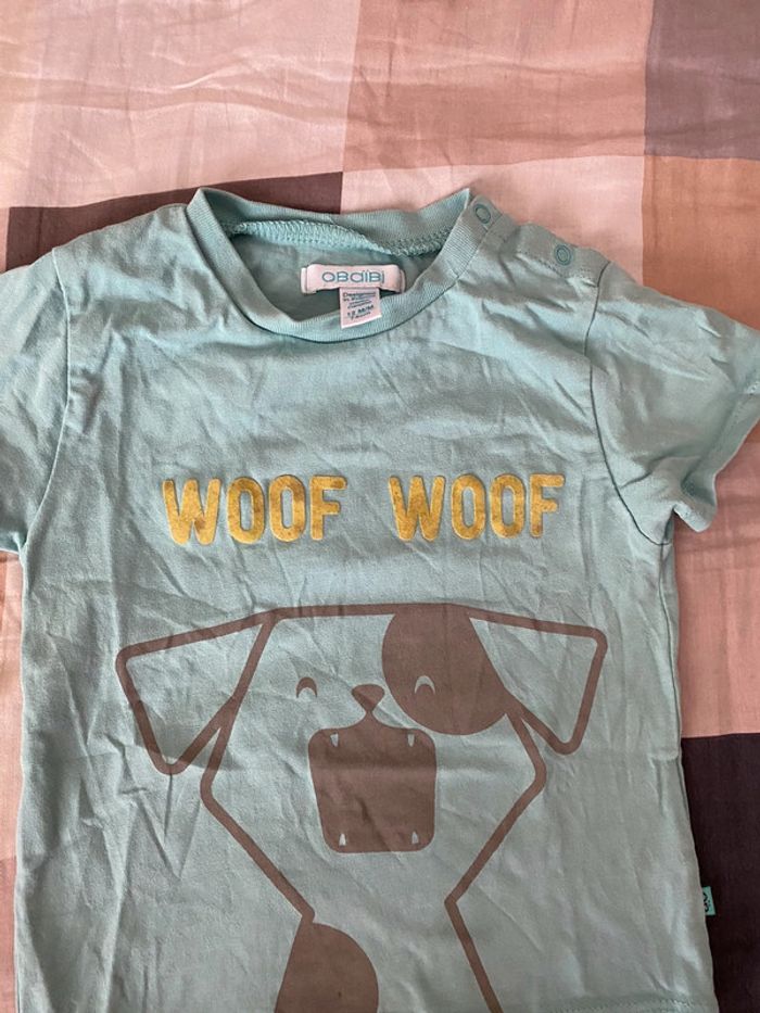 Bonjour je vends un superbe beau t-shirt manche courte de couleur bleu à motif de la marque Obaïbi Bouton pression épaule Taille 12 mois Couleur changeante sur le motif jaune WOOF WOOF voir photo N’hésitez pas à consulter mes autres annonces en ligne