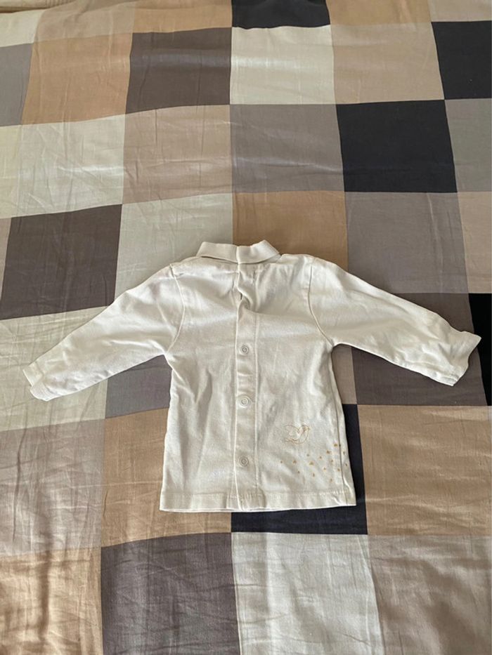 Bonjour je vends un superbe beau t-shirt manches longues de couleur blanc à motif Minnie et de la marque Disney Taille 3 mois. ouverture bouton pression dos arrière Col montant Bon état petite tache indiqué en photo N’hésitez pas à consulter mes autres annonces en ligne