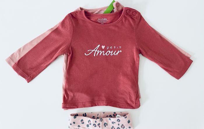 Adorable ensemble Kiabi comprenant 2 hauts manche longue et un legging Taille 3 mois Article neuf avec étiquette