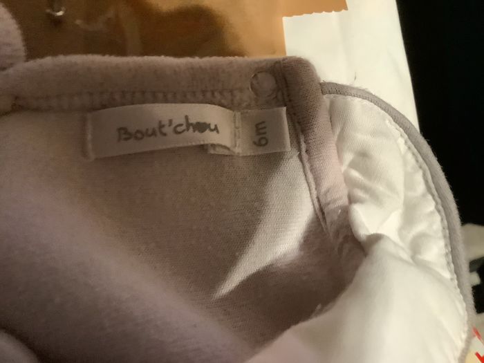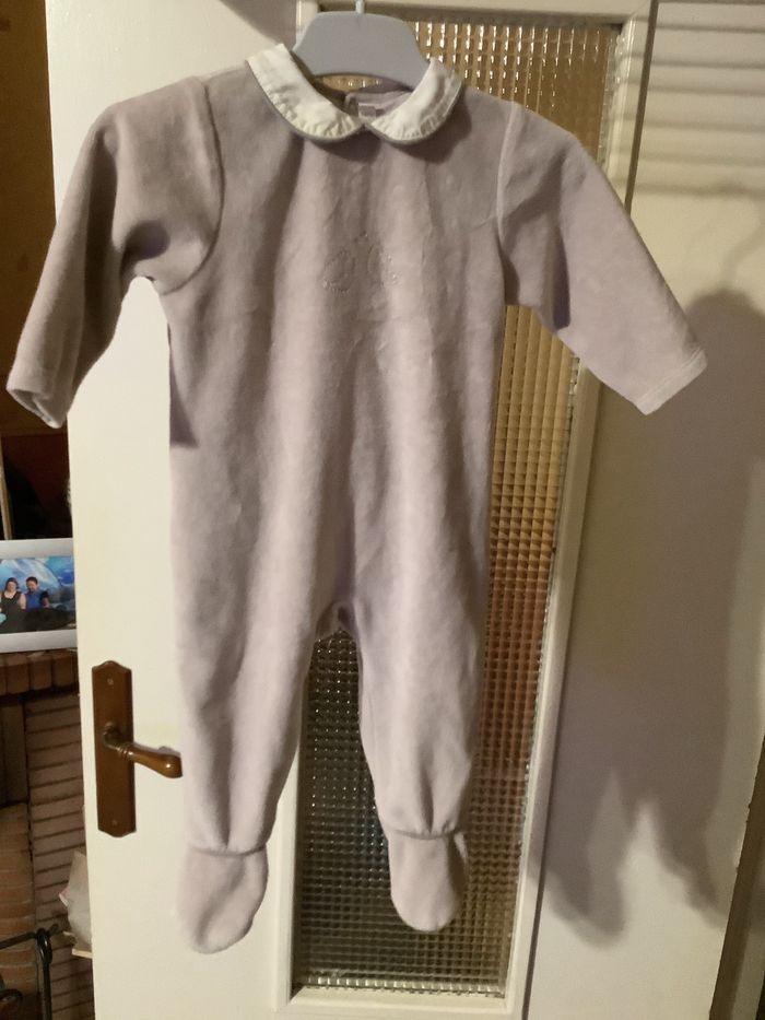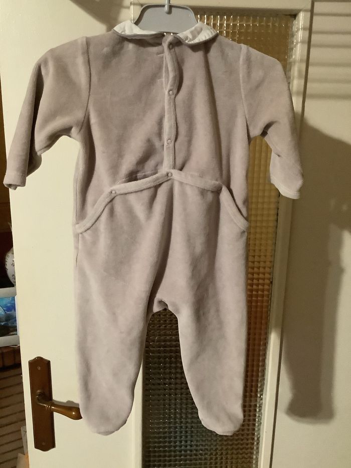 Pyjama en velours taille 6 mois, ouverture à l’arrière, col Claudine. Bon état.