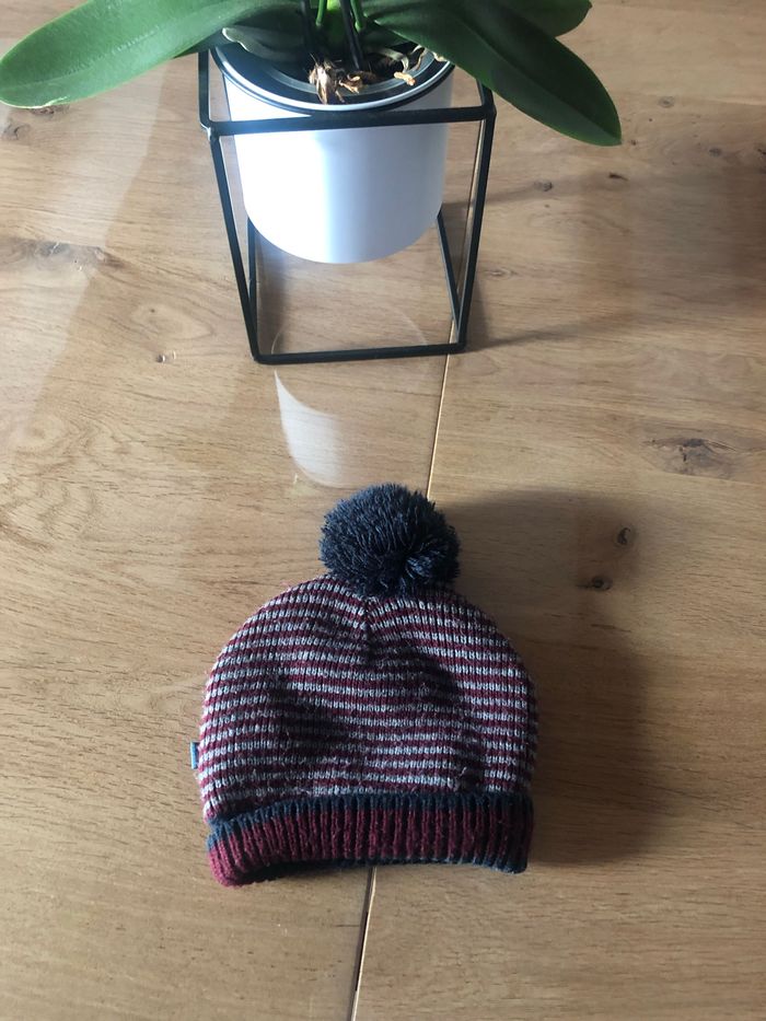 Bonnet à rayures Bordeaux et gris Taille 1-2 ans