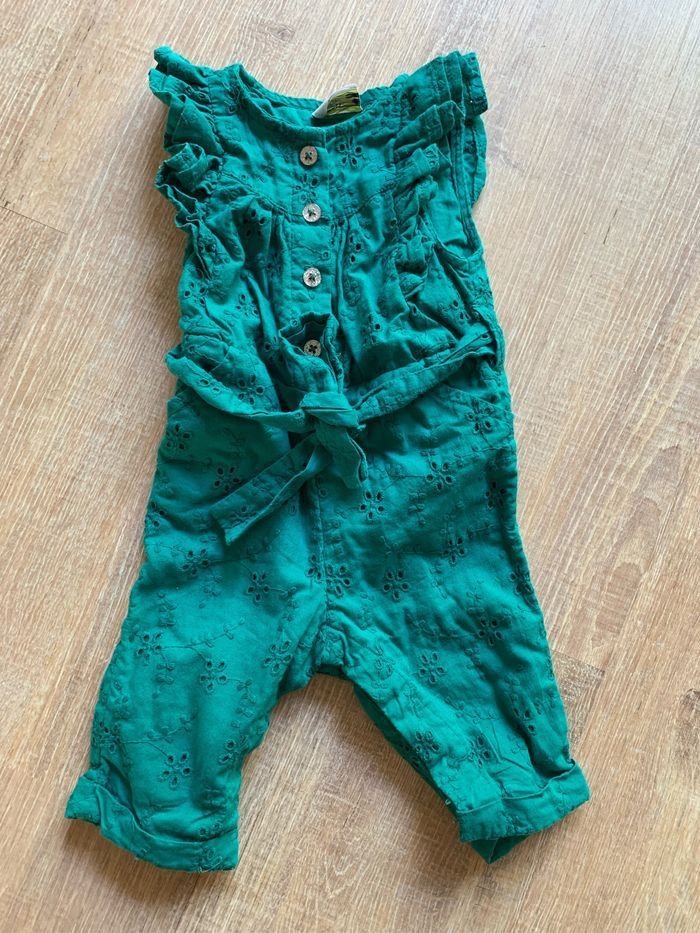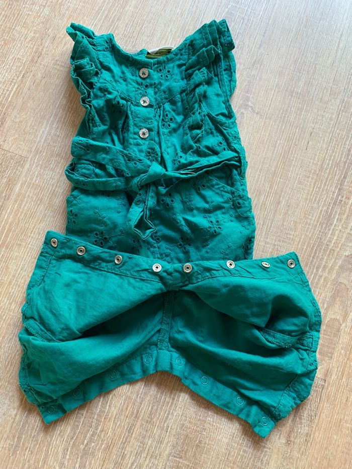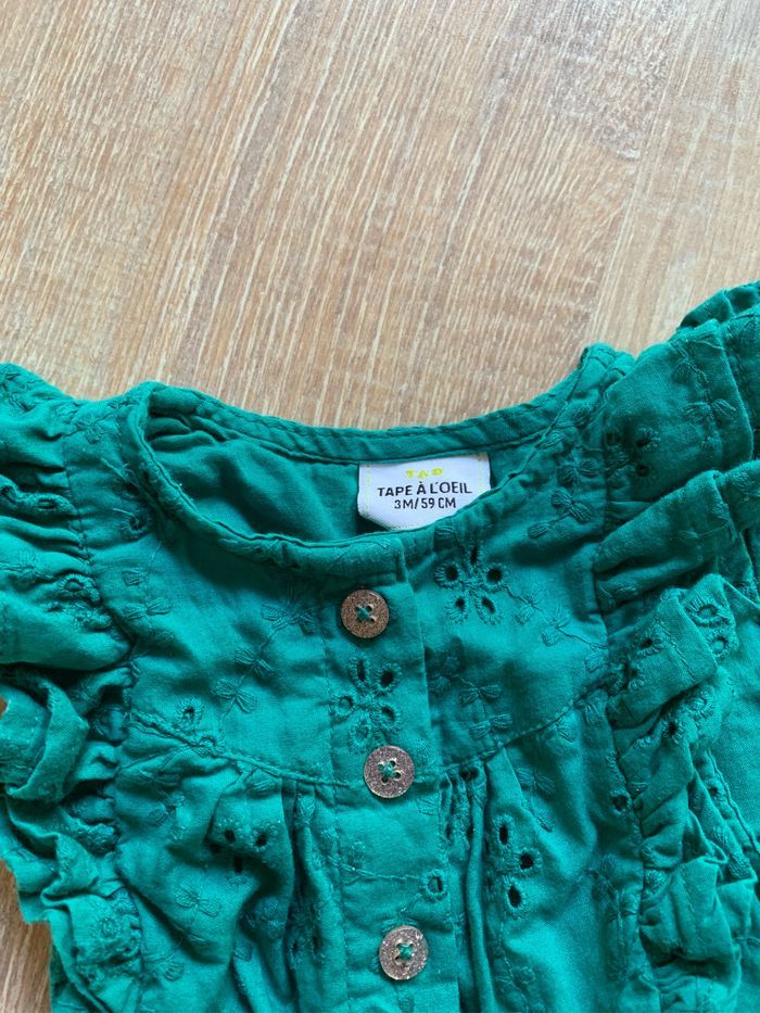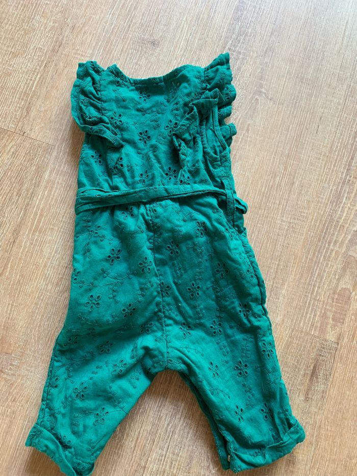 Salopette combinaison manches courtes verte Tape à l’œil 3mois 59cm Ceinture à la taille amovible Très bon état mais l élastique à la taille est en parti décousu