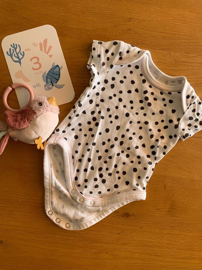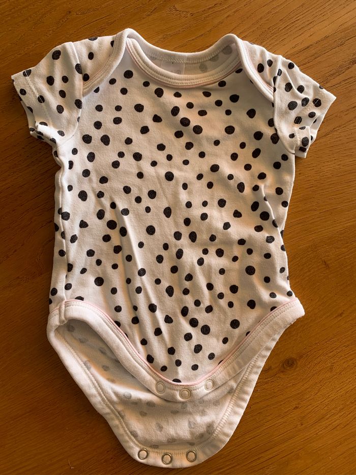 Body à manches courtes Blanc à pois noir Très bon état, à peu servi C&A 3 mois 62cm Coton