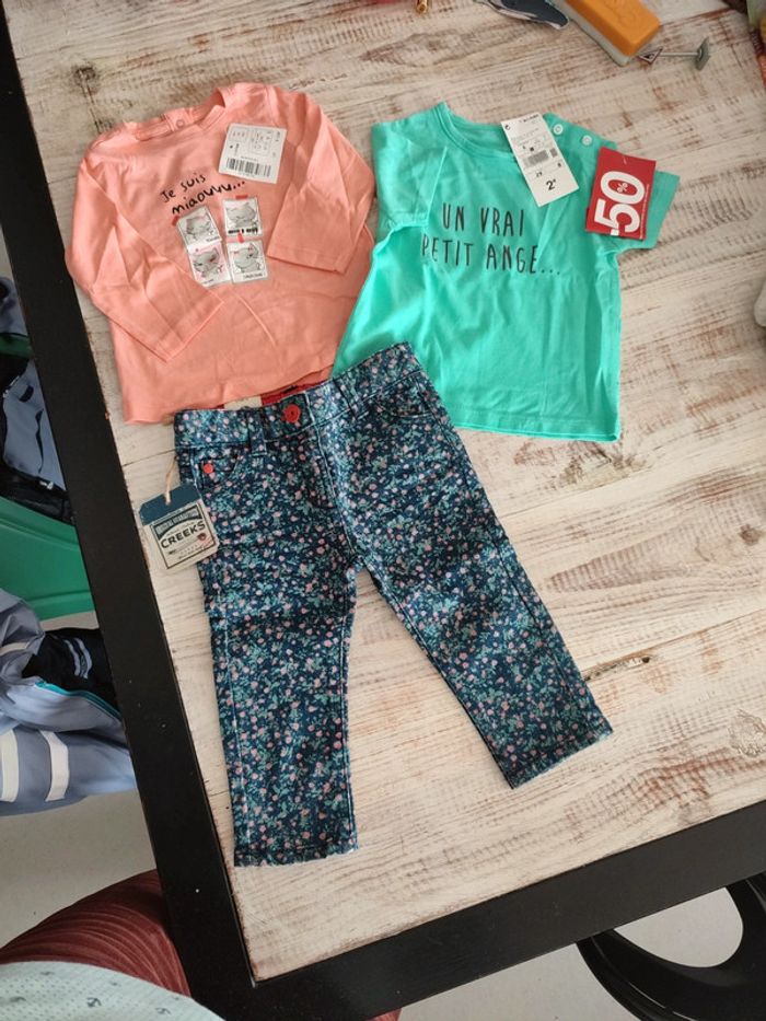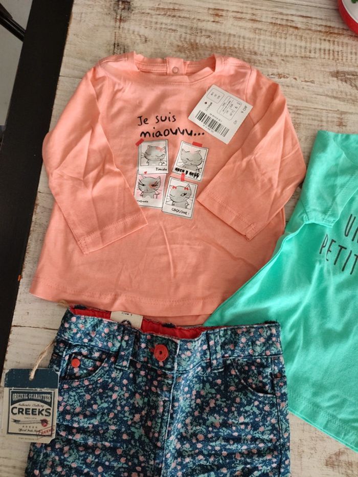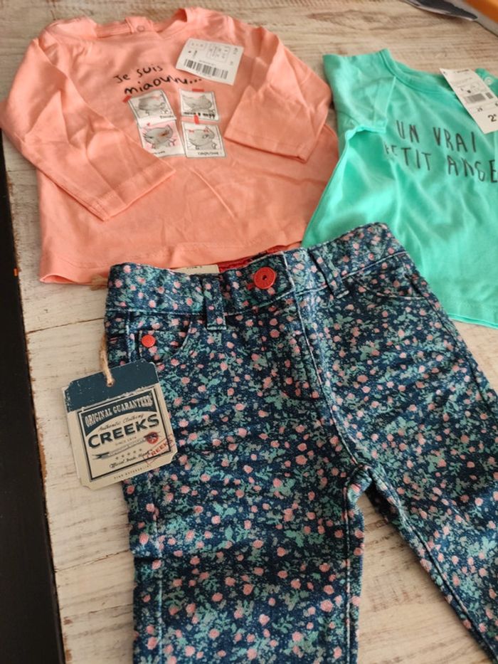 Tout est neuf, taille 6 mois 1 jean Creeks + 1 t-shirt manches longues Kimbaloo + 1 t-shirt manches courtes kiabi
