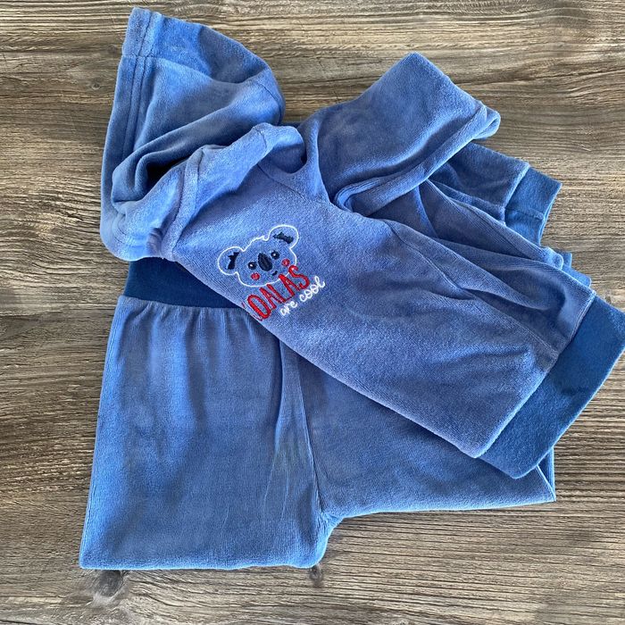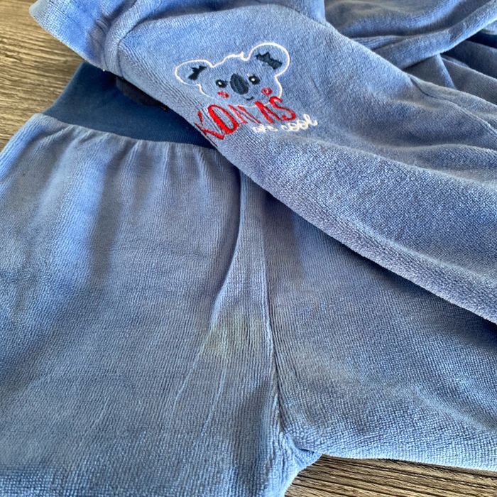 Jogging souple bon état Une légère tache sur le pantalon sinon pas de défauts Taille 6/12mois