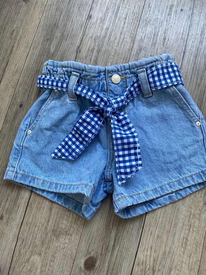 Short en jean avec ceinture vichy bleu Neuf sans etiquette