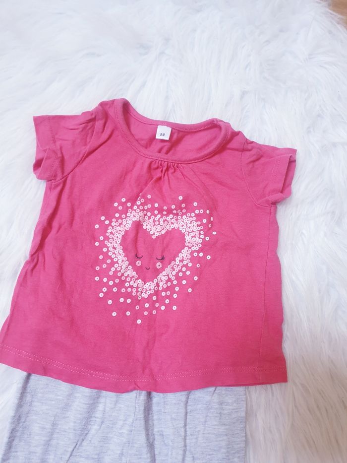 🎀 Lot d'un t-shirt et un legging 🎀 Taille 9 mois 🎀 T-shirt manches courtes avec coeur et legging gris 🎀 Très bon état 🎀 Réductions sur lots activées