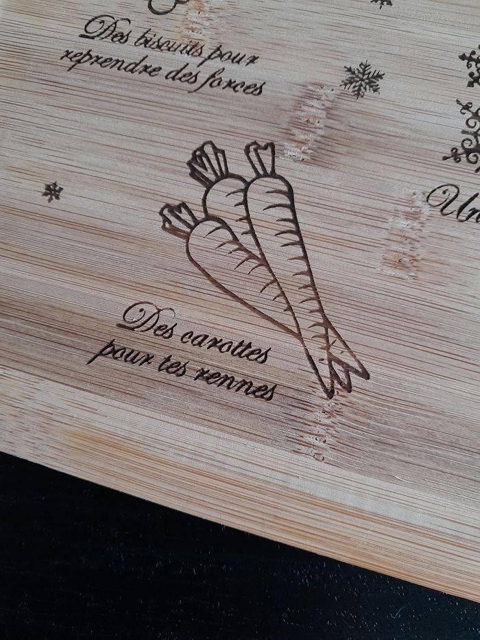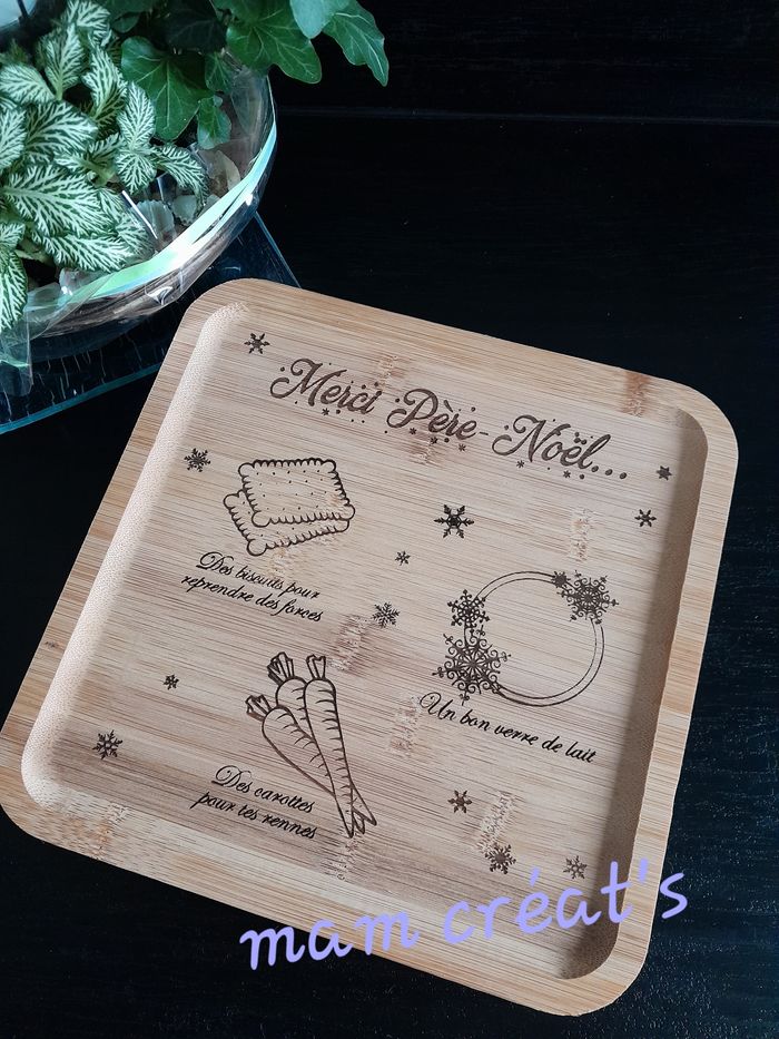 Assiette/ plateau pour remercier le père Noël lors de sa tournée. 🤶 🎅 Plateau en bambou environ 24x24cm Gravure réalisée par mes soins. Possible d'ajouter une inscription sur demande. Facture sur demande N'hésitez pas pour toutes questions