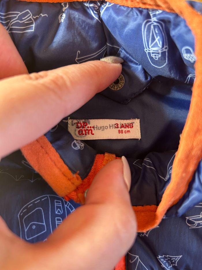 Doudoune sans manches Du Pareil au Même Taille 3 ans en très bon état. Un trou a était recousu mais ne se voit pas dans l’ensemble de la doudoune (voir en détail photo 4).