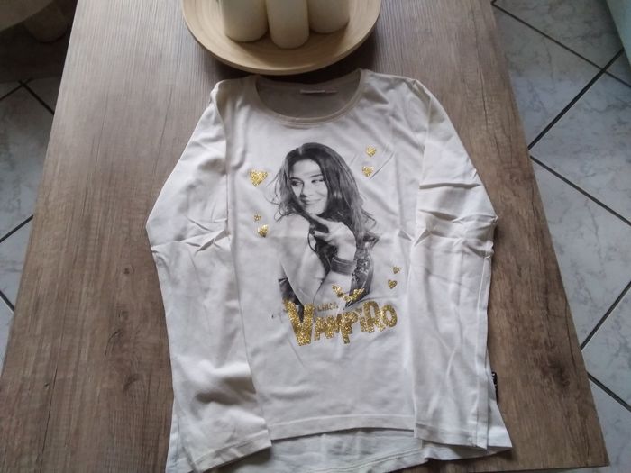 maillot manches longues légèrement bouloché sur les manches dessin en très bon état les coeurs et les écritures sont brillants