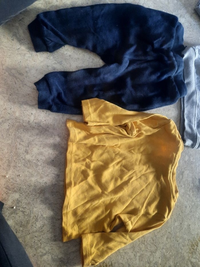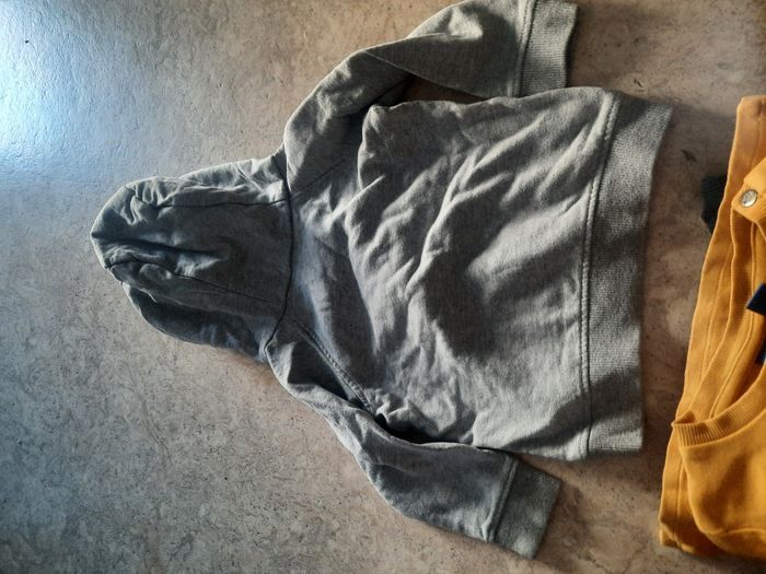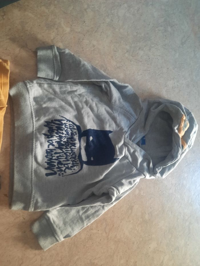 Pull à capuche, tee shirt manches longues et pantalon avec liens à la taille. Taille 12 mois. Très bon état. Orchestra.