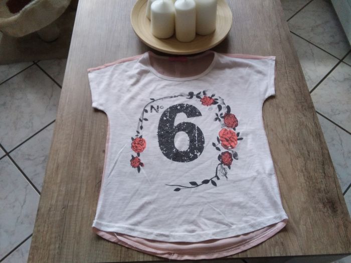 maillot sans manches rose transparent dans le dos strass sur le dessin légèrement plus long dans le dos voit qu il a était mis plusieurs fois mais reste tout de même dans un état correct