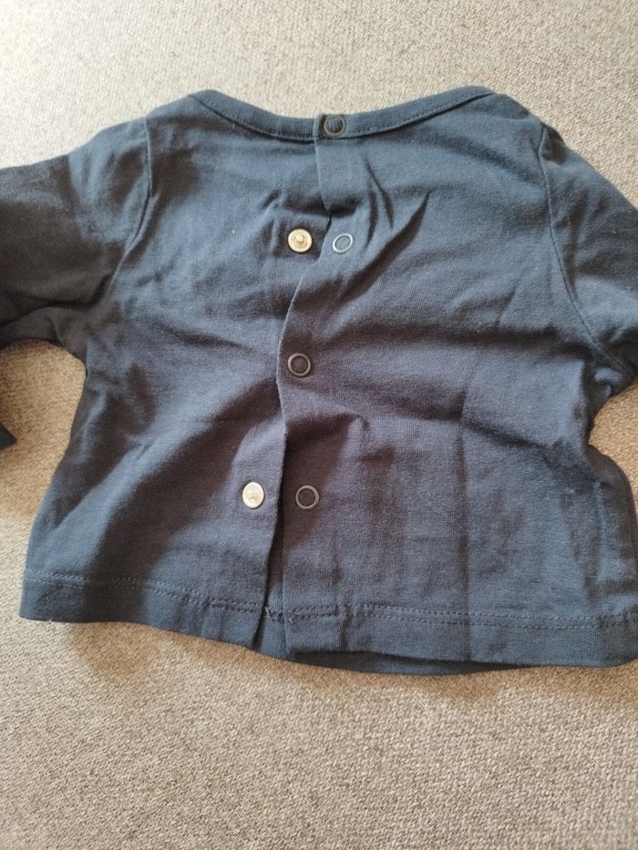 T-shirt manches longues taille 1mois peu porté très bon état.ouverture dans le dos pour faciliter l'habillement.