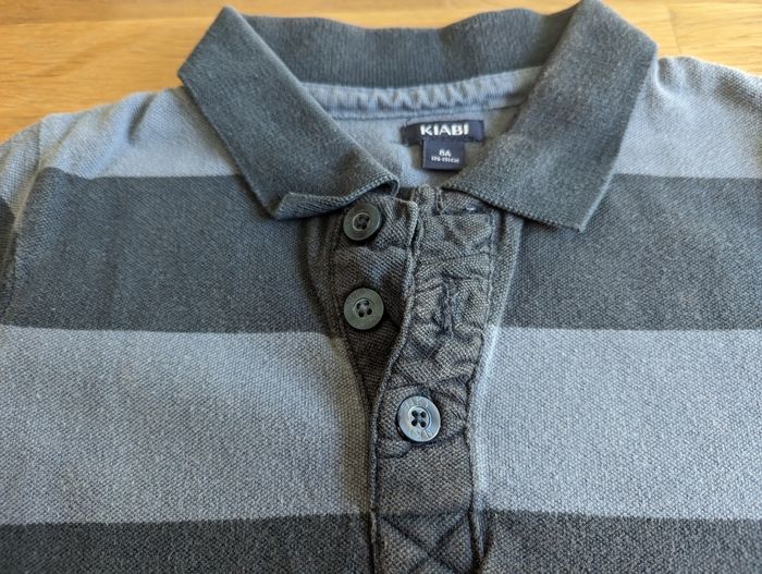 Polo garçon 8 ans Kiabi Etat satisfaisant, bleu foncé et clair, la couleur semble passée par endroits. 100% coton