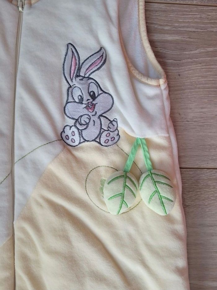 peu portée gigoteuse polaire jaune et blanc mixte pour bébé de 6 mois et plus 36 mois (possibilité de la raccourcir à l'aide de boutons pressions). Dans maison non fumeur et sans animaux, elle est en bon état, sans tâche ni trou.