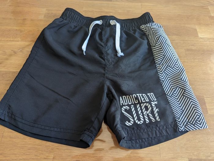 Short de bain garçon 8 ans Kiabi Bon état, voire TBE, noir et blanc. Étiquette coupée