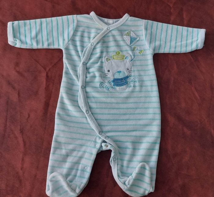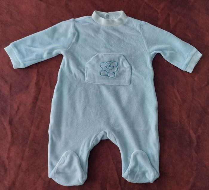 Lots de 3 pyjamas en velours. Un des pyjamas a une petite tâche au niveau du col.