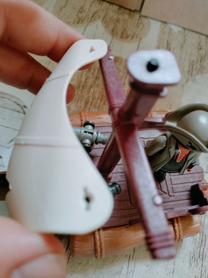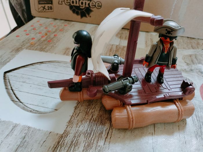 Radeau pirate playmobil 1 radeau pirate 2 personnages pirates playmobil 2 canons ( fixer au radeau ) Attention la toile tient droite sans soucis mais les petites pattes de fixation sont plus là