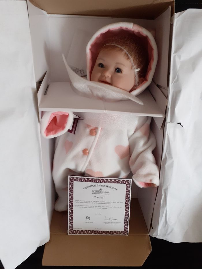 Poupée anglaise s'avança marque the Ashton drake Galeries. état neuf jamais sorti de sa boîte d'origine prix 150euro pensé au cadeau de Noël merci