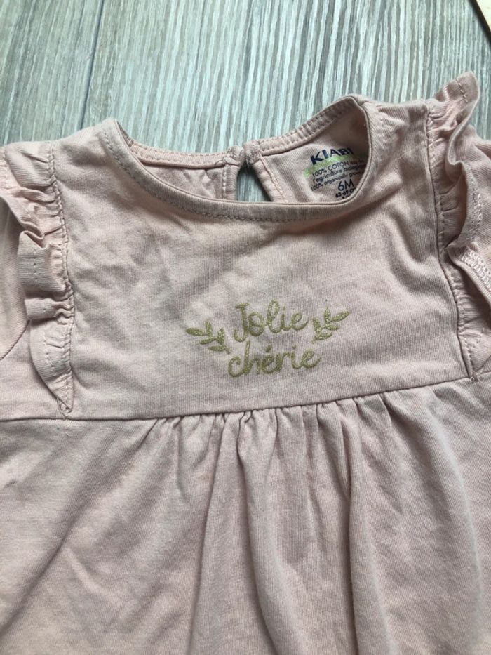 Tshirt kiabi taille 6 mois manches longues. Ecriture dorée « Jolie chérie »