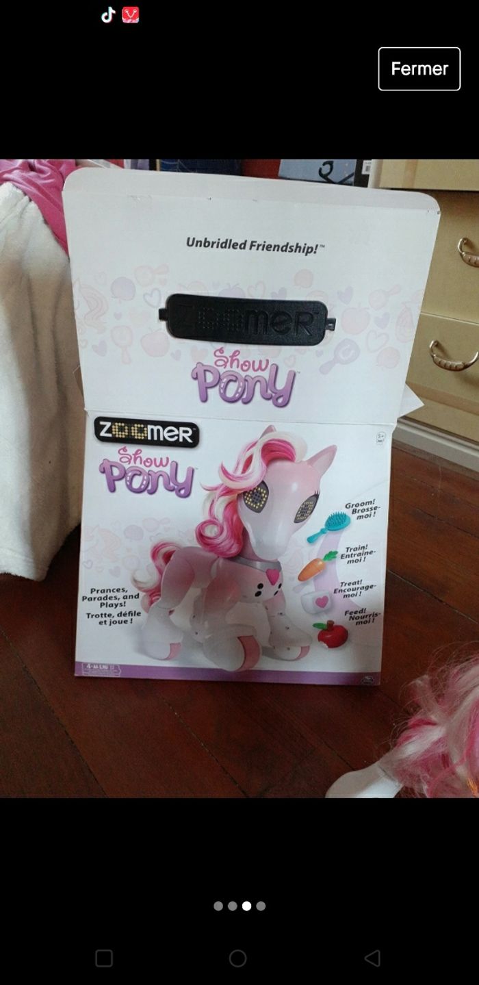 Achetée 80 euro pour Noël a juste été ouverte ne se serre pas j'ai la boîte avec bouge comme un vrai poney elle te suit effet sonores regarde le tut sue you tube pour savoir comme sa fonctionne