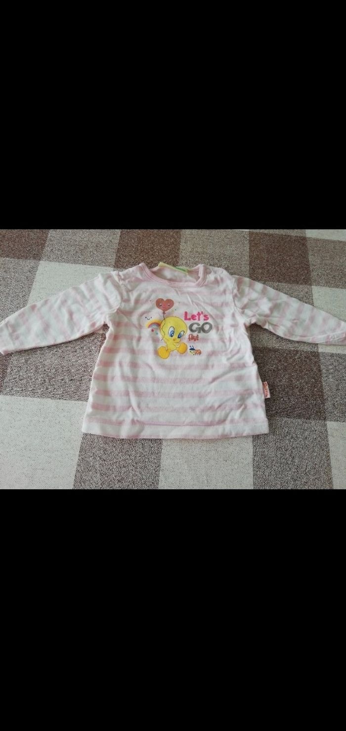 TS 9 mois manches longues rayé rose/blanc Titi