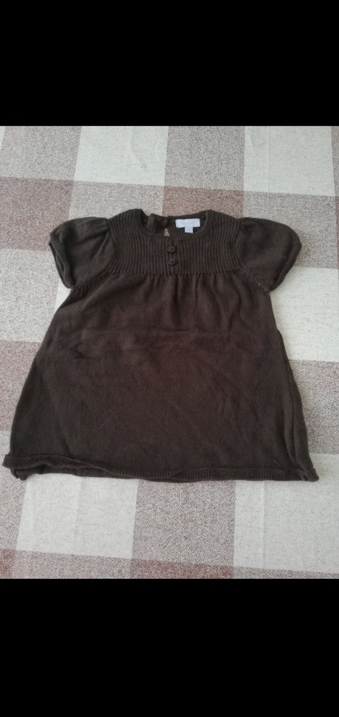 Robe 9 mois manches courtes en laine marron tex - photo numéro 1
