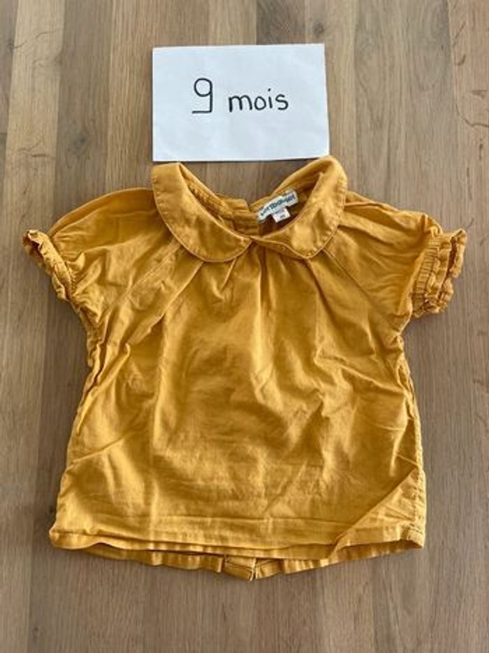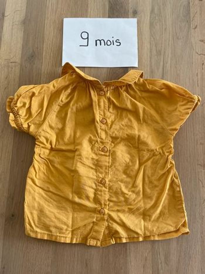 T-shirt à manches courtes jaune col claudine 9 mois Vertbaudet Très bon état