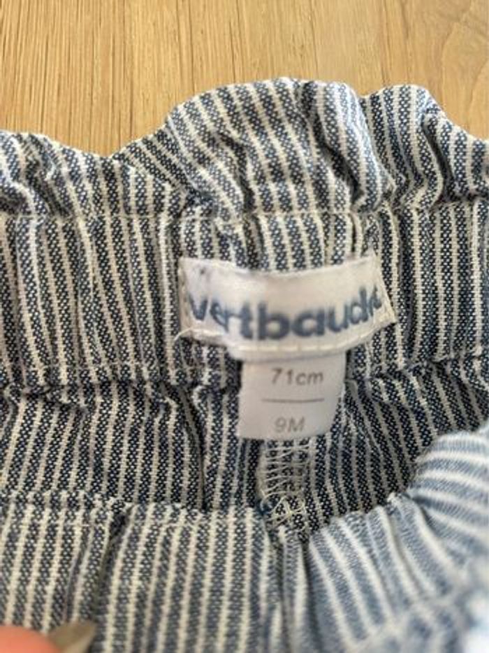 Pantalon bleu à rayures blanches 9 mois Vertbaudet Très bon état