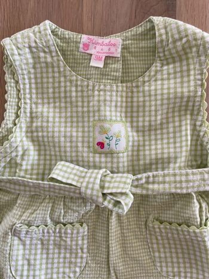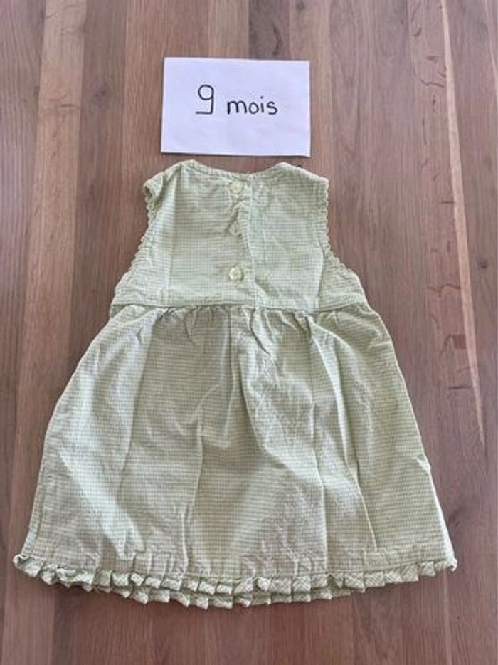 Robe verte et blanche, ceinture à nouer 9 mois Kimbaloo Très bon état