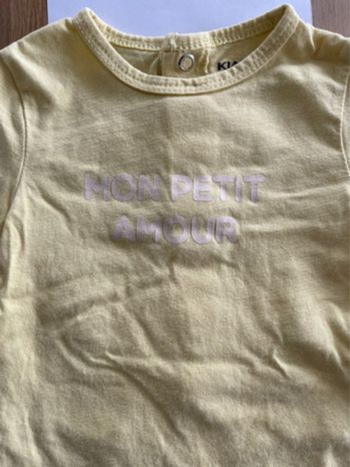 Pyjama léger jaune « mon petit amour » Fermeture dans le dos Kiabi 6 mois Très bon état