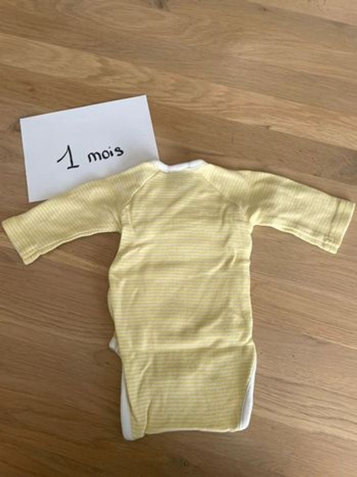Body jaune à manches longues 1 mois Boutons pression, fermeture en cache-cœur Boîte à malices Très bon état