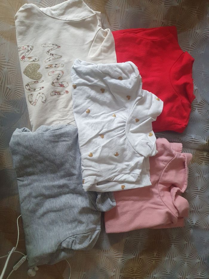 Lot t-shirts et 1 pull, tbe. 12 mois fille