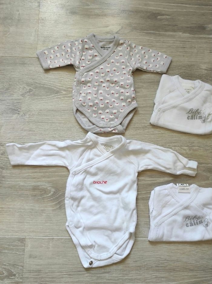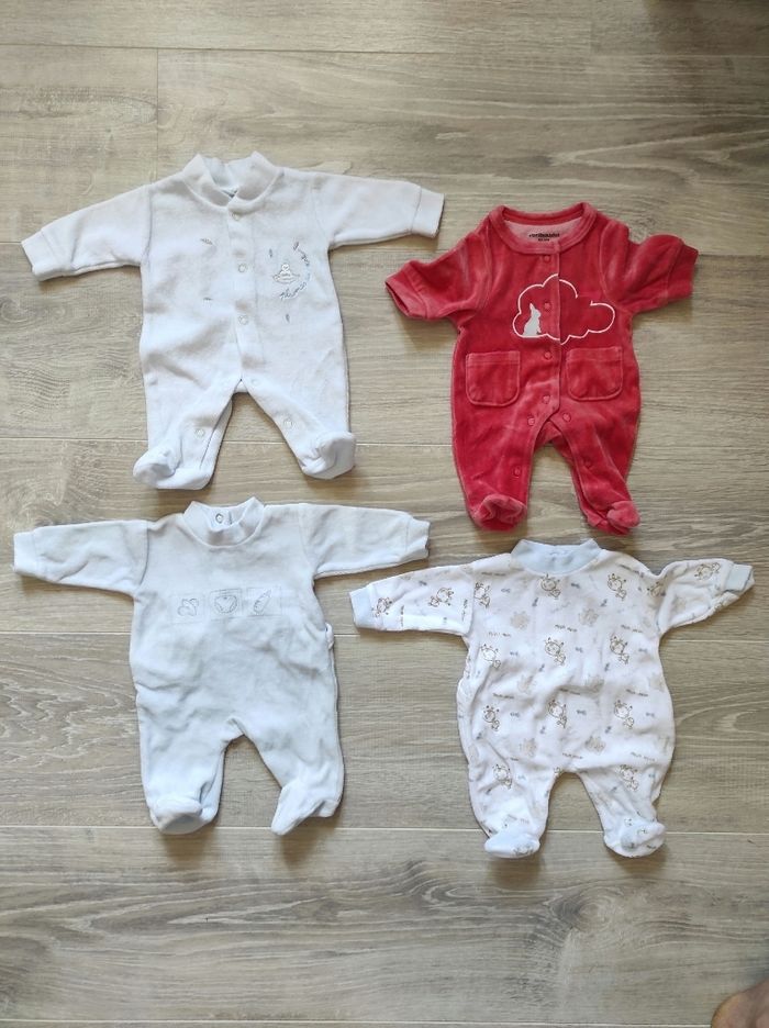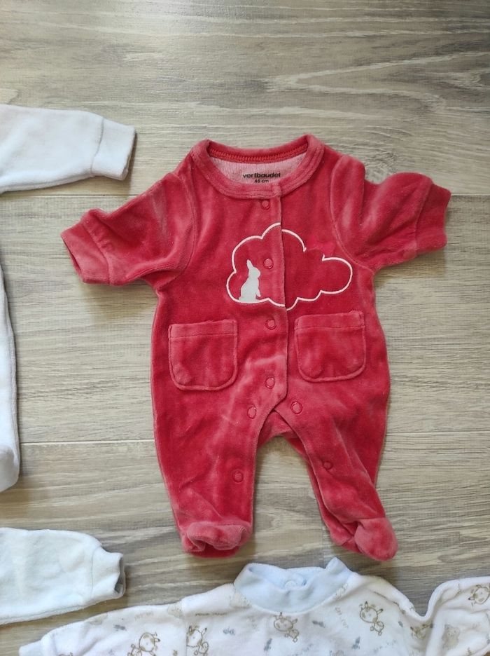 Lot prema de 4 pyjamas, 6 body, 2 bonnets, une brassière et une paire de chaussons fins. Marques Vertbaudet, mots d'enfants, pick ouik... couleurs mixte, comme neuf jamais utilisé. Tailles 43-45
