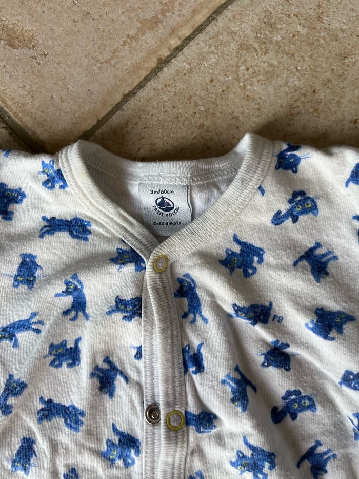 Combinaison petit bateau motif petit chats Sans pieds Taille 3 mois Fermeture sur le devant à pression
