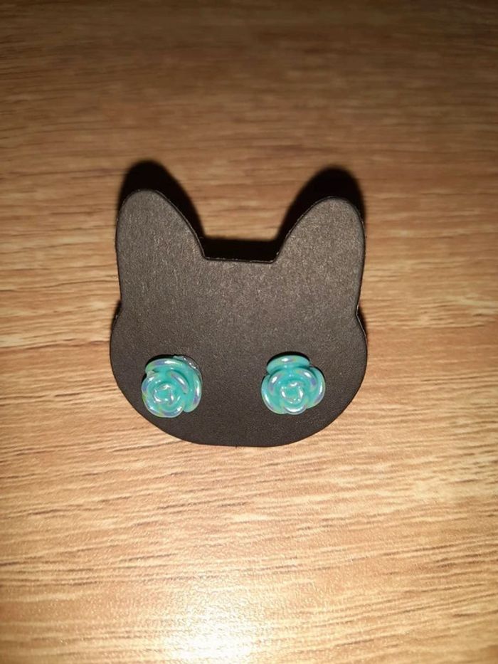 Boucles d'oreilles en forme de rose bleu 1e