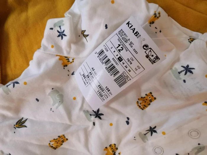 🌼Details : lot / ensemble t-shirt motif palmier tigre (animaux) + short 🌼Marque : Kiabi 🌼Couleur : blanc bleu jaunr moutarde 🌼Taille 12 mois