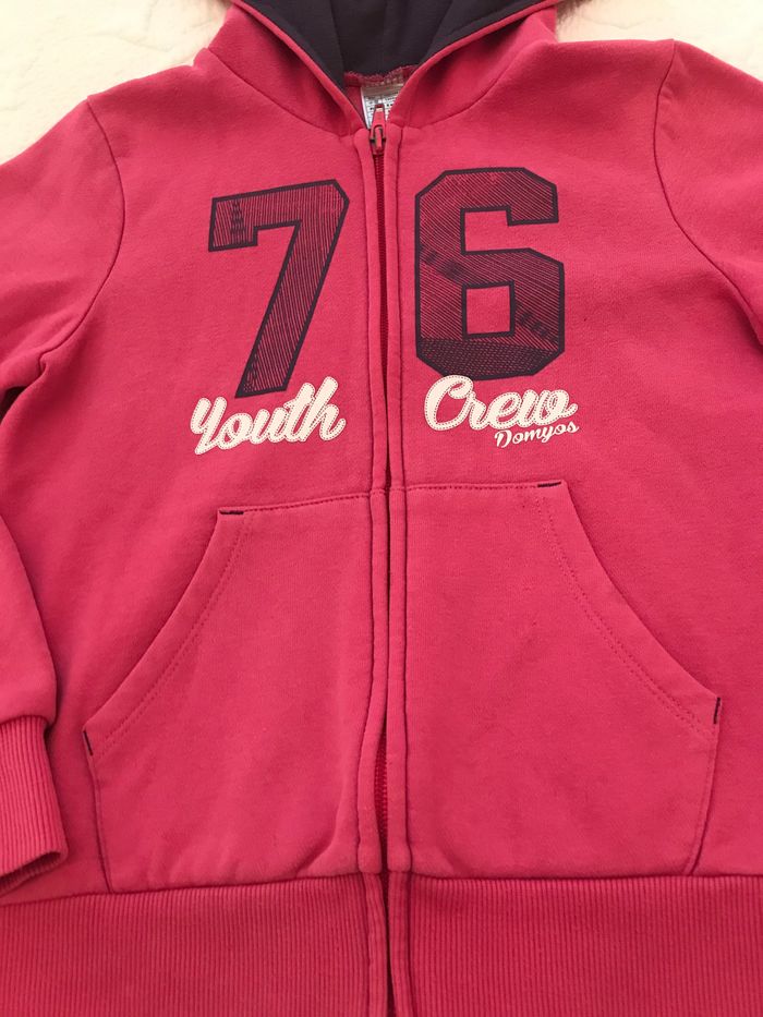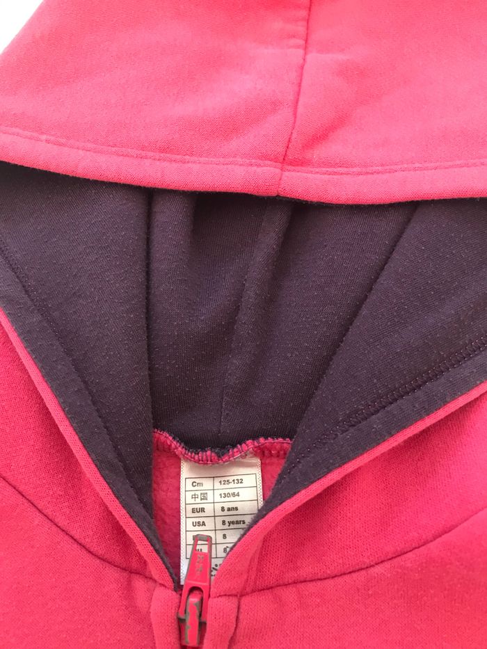 Sweat à capuche, zippé devant, Molleton doux. Capuche doublée. Manches longues. Base droite. Bords côtelés Taille : 8 Ans Bon état Marque : OXYLANE