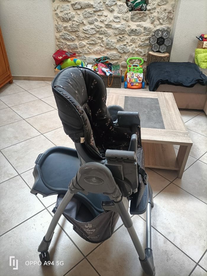 Bonjour je vend ma chaise haute Disney Mickey et Minnie de couleur grise elle mar servi pour mes deux enfants et peux encore servir. Prix non négociable. Elle est compacte, ajustable en hauteur, a deux positions assis ou semis assis, le plateau aussi a deux positions près ou semis près . Elle est très pratique . Elle a quelques rayures d'usure mais ne change rien à sa fonction.