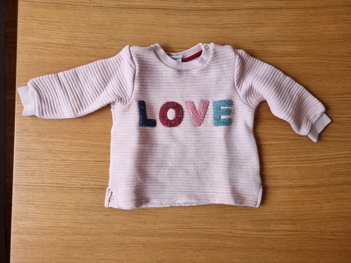 Pull rose LOVE Marque H&M Taille 74 mais taille grand Très bon état