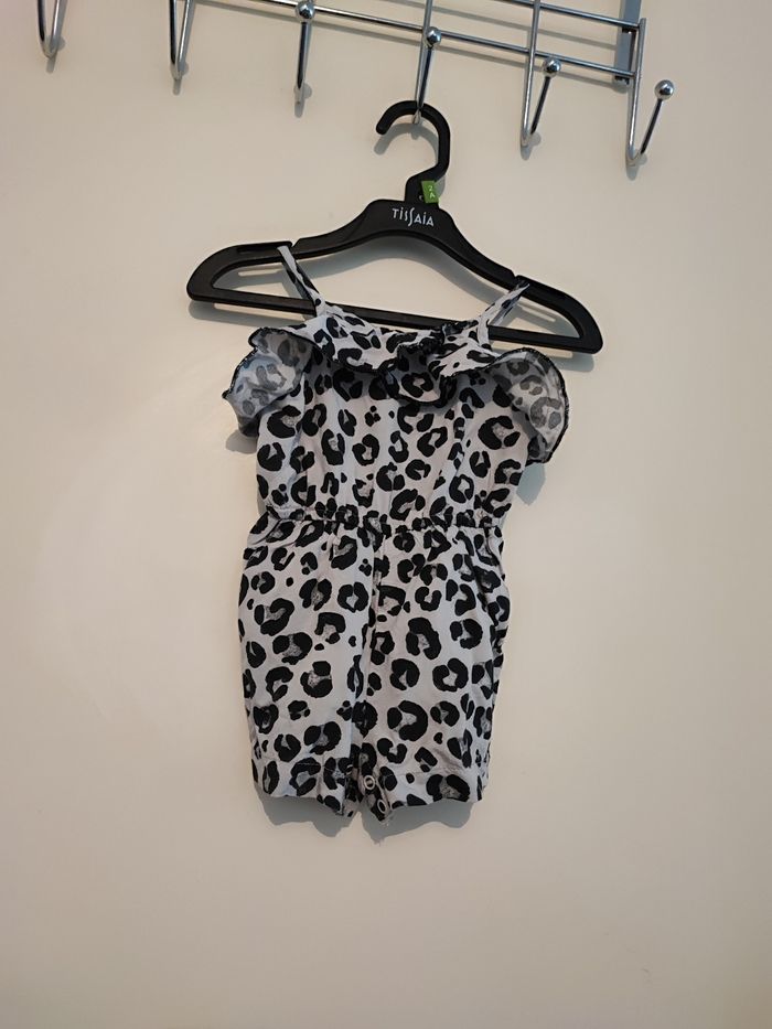 Superbe combishort bébé fille Imprimé Volants au buste Entrejambe bouton pression Fines bretelles Dos élastique Taille 3/6 mois
