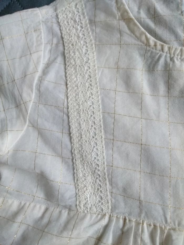 Blouse ou maillot courte manche,blanche avec des lignes dorées, taille 5 ans, neuf #celine59160fille5ans