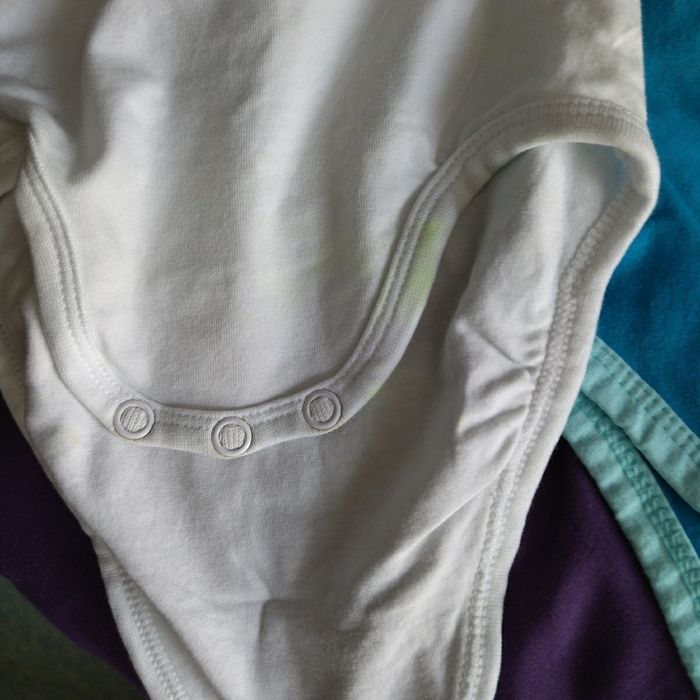 3 bodies sans manches et 2 avec manches courtes. Le body blanc à gauche sur la photo a des tâches vertes en bas. Les autres bodies sont parfaits