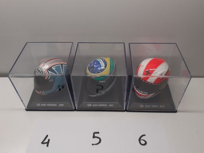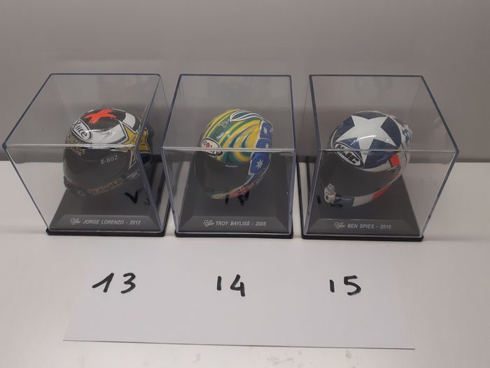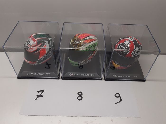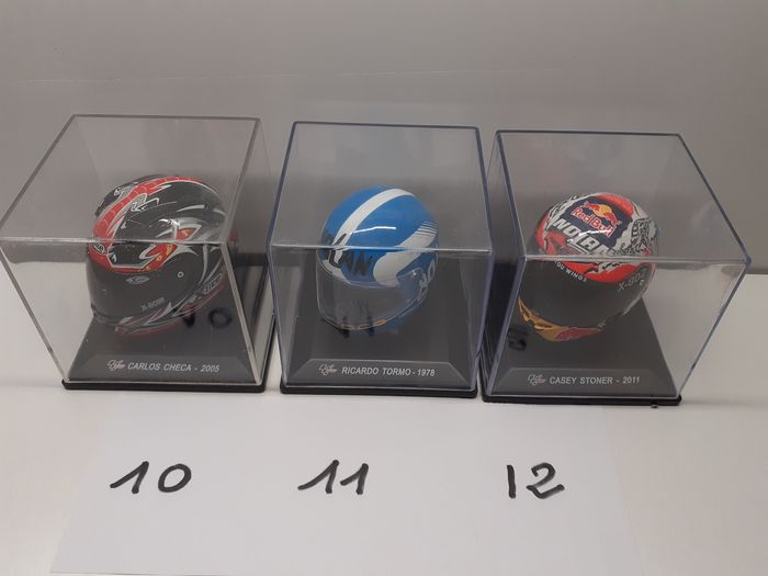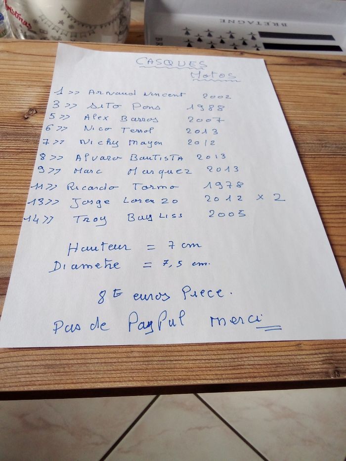 Collection de petits casque de moto liste avec les photos état neuf prix 8euro pièce merci