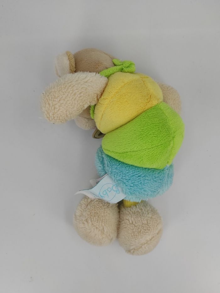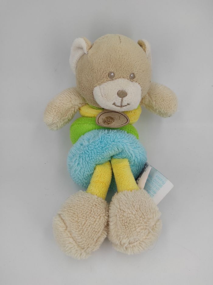 🧸 Doudou Peluche Ours Beige Vibrant Baby Nat'. Corps jaune, vert et bleu. Collection Vibrato Ass Bubble Gum Réf fabricant : BN686 📏 Dimension : + ou - 20 cm ✨ État : Occasion, excellent état 💦 Lavé avec une lessive hypoallergénique 🧼 👀 Vous achetez le doudou que vous voyez sur les photos.
