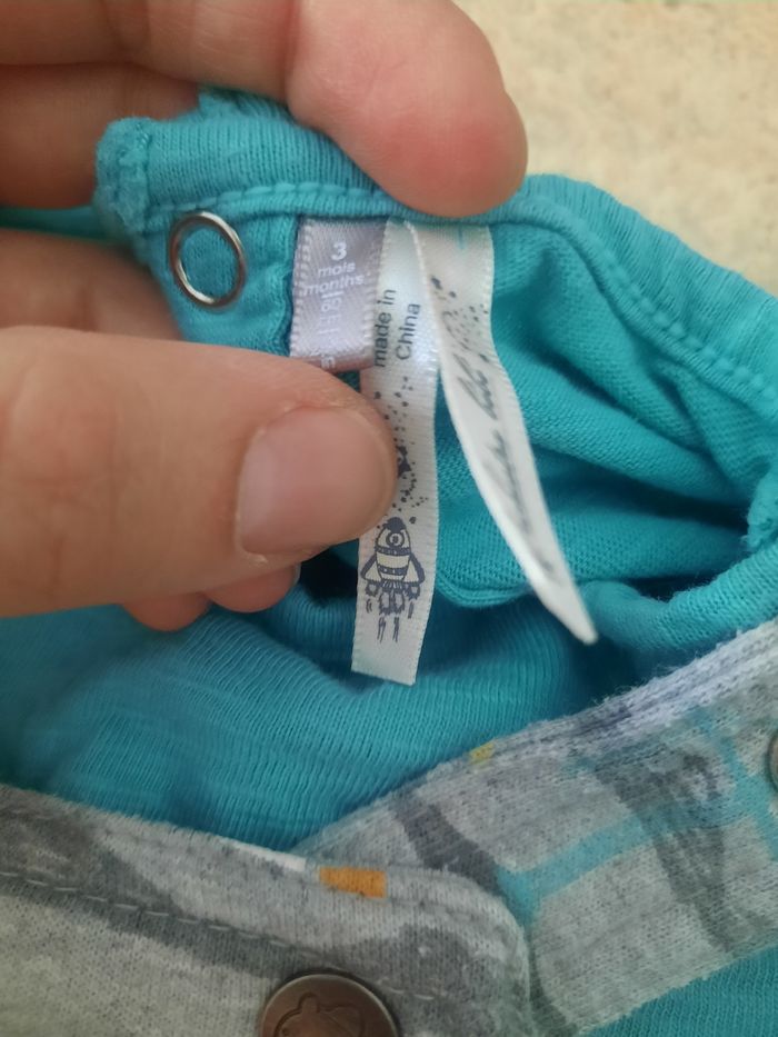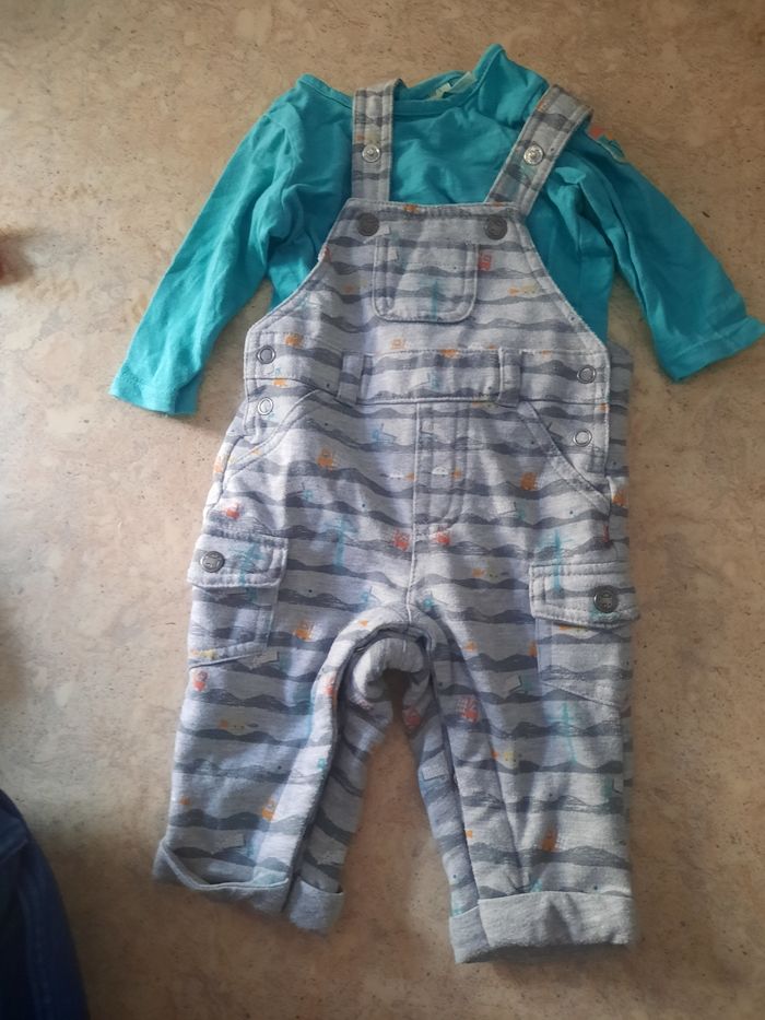 Salopette molleton et tee shirt manches longues. Taille 3 mois. Très bon état. Orchestra.