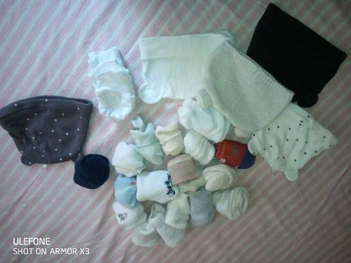 Lot bébé garçon de 0 -6 mois, principalement automne -hiver. Le lot est composé de 6 bavoirs , 2 paire de gants , 3 bonnets épais et 2 plus fins, 16 paires de chaussettes, 2 tee shirt manches longues, un pantalon jogging jamais utilisé, une salopette, une chemise jamais utilisé , et 3 pulls dont 2 jamais utilisé. Le tout en parfait état. Différentes marques, Disney, Orchestra, Gémo.